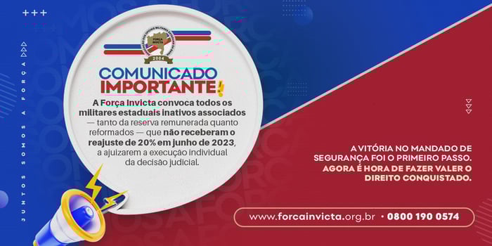 A Força Invicta reafirma seu compromisso histórico com a valorização dos militares estaduais e a defesa de seus direitos remuneratórios.