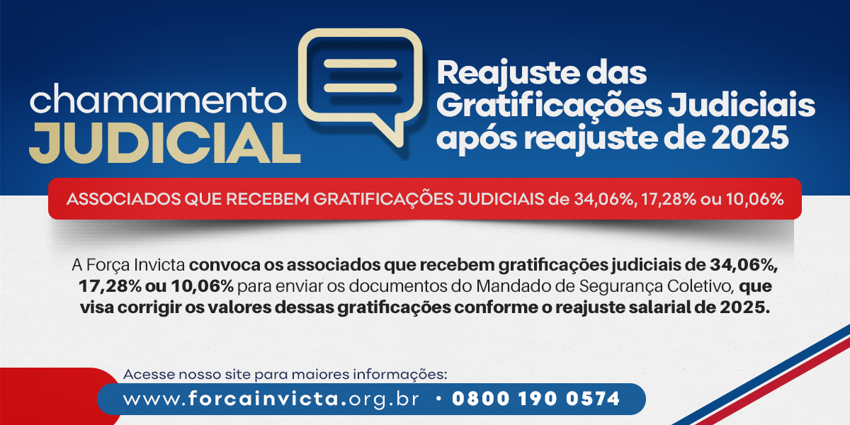 A Força Invicta convoca seus associados para a coleta de documentos referentes à instrução do Mandado de Segurança Coletivo sobre a correção dos valores das gratificações judiciais com base no reajuste salarial 2025.
