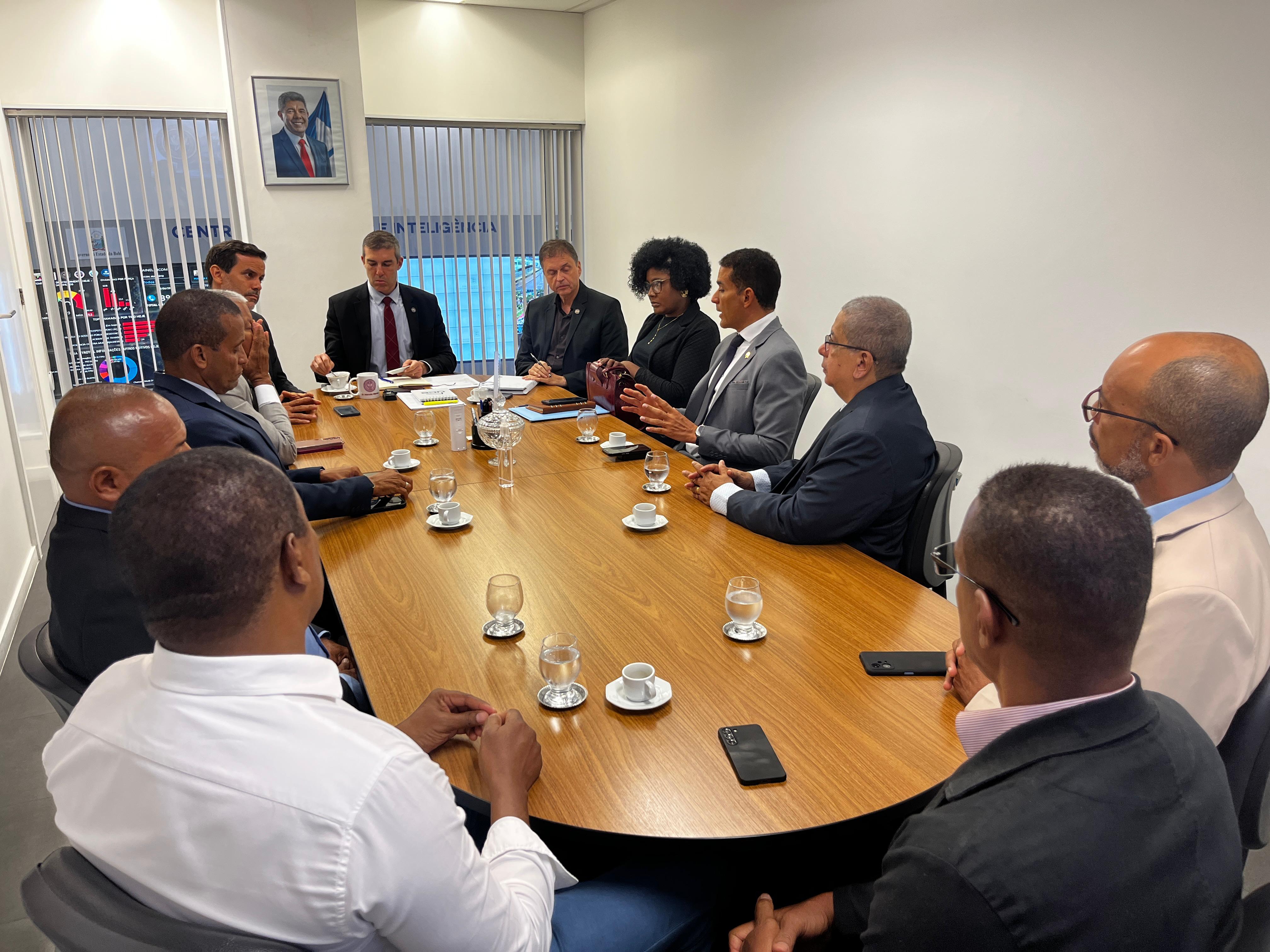Participaram da reunião, pela Secretaria de Segurança Pública, o secretário Marcelo Werner, o subsecretário Marcel Oliveira e o coordenador executivo da pasta, Olinto Marcelo Macedo.