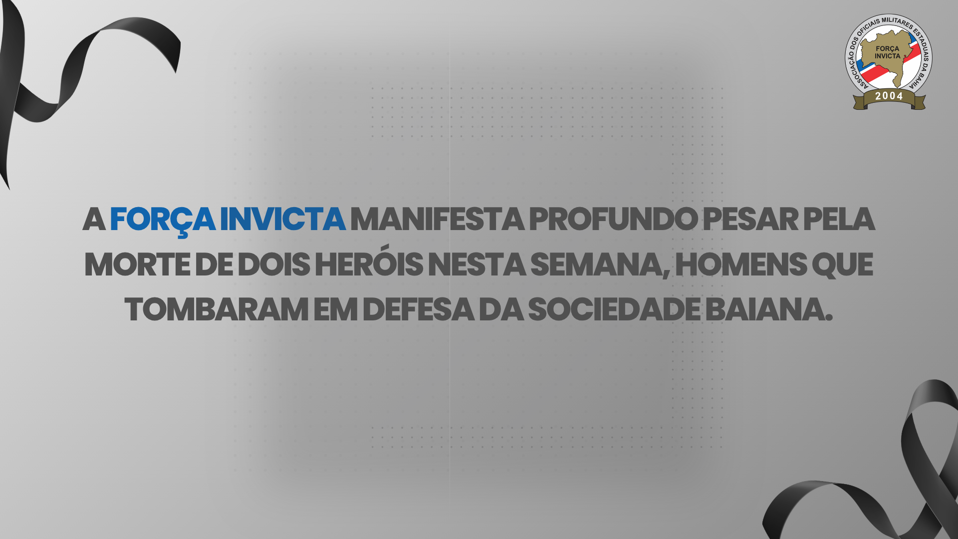 A Força Invicta manifesta profundo pesar e indignação diante da morte de dois heróis nesta semana, homens que tombaram no cumprimento do dever, em defesa da sociedade baiana.