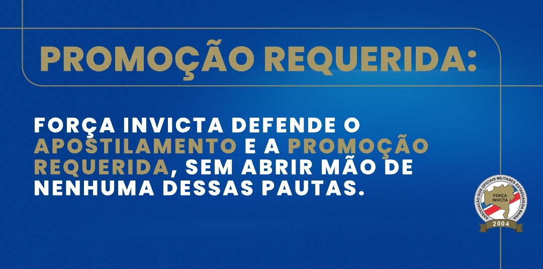 A Força Invicta segue ao lado do Major Tadeu, defendendo tanto o apostilamento quanto a promoção requerida, e cobrando do governador o cumprimento do compromisso assumido com a categoria em 2025, na mesa de negociação salarial com a Força Invicta e a APPM, em um contexto de reajuste abaixo do necessário para recompor as perdas inflacionárias, compromisso que também foi reafirmado nas tratativas com o Major Tadeu.